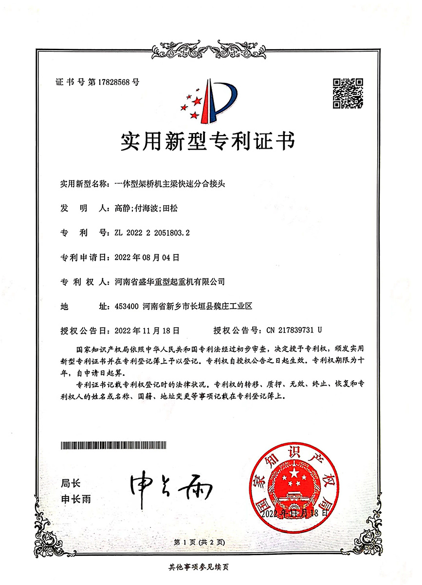 1. 此架橋機主梁采用疊加箱梁結構,剛度大、撓度小。